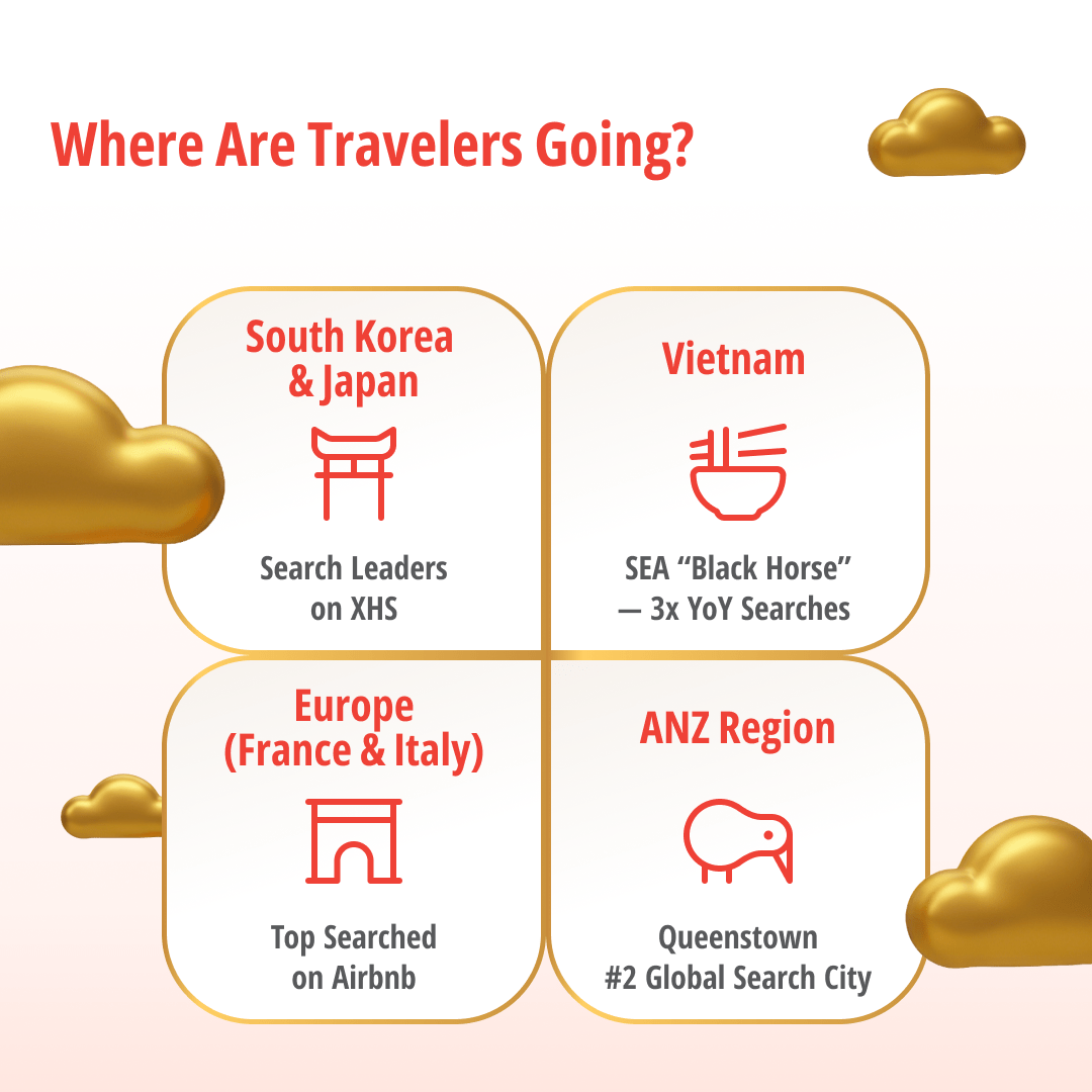 - South Korea: leads search rankings on Xiaohongshu2, trending on Airbnb +500% YoY3